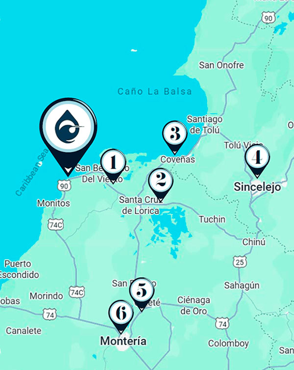 - A 60 km de Coveñas y 80 km de las playas turísticas de Tolú